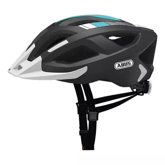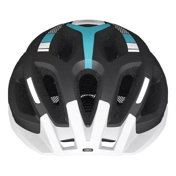 Il casco Abus Aduro 2.0 con connessione duratura della calotta esterna e del materiale che attutisce gli urti (EPS) del casco, presenta una visiera amovibile con i tappi. Il sistema di regolazione funziona con una rotella.