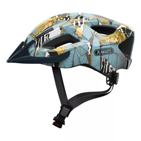 Il casco Abus Aduro 2.0 con connessione duratura della calotta esterna e del materiale che attutisce gli urti (EPS) del casco, presenta una visiera amovibile con i tappi. Il sistema di regolazione funziona con una rotella.
