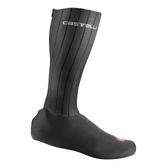I copriscarpe Castelli – 6 Fast Feet Rosso Corsa offrono una copertura che va ben oltre le scarpe, coprendo gran parte della gamba fino ai polpacci. I test nella galleria del vento mostrano un risparmio fino a 6 watt a 45 km/h rispetto ai normali copriscarpe.