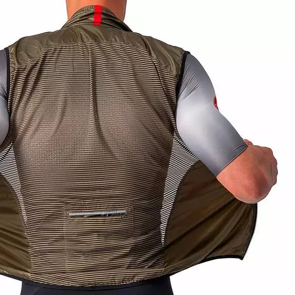 Il gilet antivento Castelli Aria è stato progettato per bloccare completamente il vento nella parte anteriore e garantire la traspirazione nella parte posteriore. I tessuti sono così leggeri che rimarrai sorpresi dal calore che forniscono quando lo indossi. Il tessuto elastico applicato sul retro garantisce una perfetta vestibilità senza essere troppo aderente al corpo.