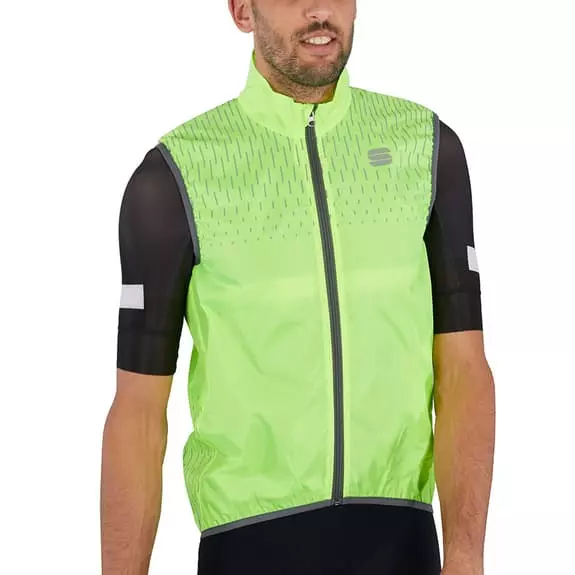 Il gilet antivento Sportful Reflex è progettato per garantire la protezione dal vento e fornire visibilità senza compromettere la traspirabilità. È realizzato in tessuto antivento e traspirante, insieme a una serie di elementi riflettenti che offrono la massima visibilità.
